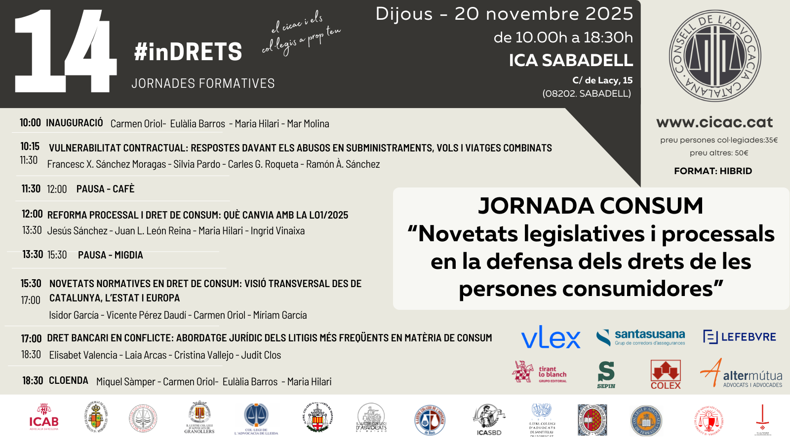 - Presencial a la seu de l’Il·lustre Col·legi de l’Advocacia de Sabadell