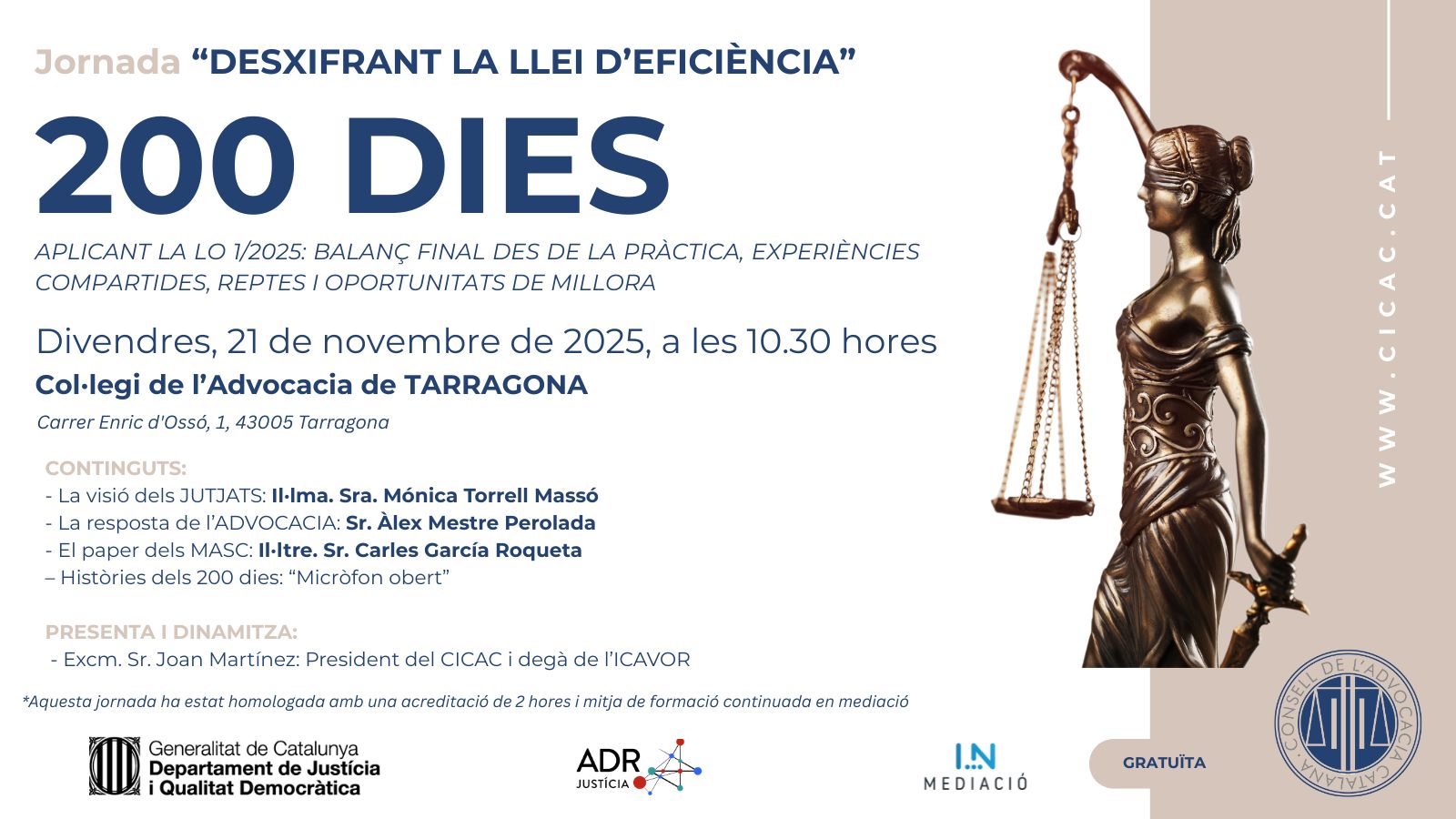 - Presencial a l’Il·lustre Col·legi de l’Advocacia de Figueres-Alt Empordà (Aforament limitat per ordre d'arribada d'inscripcions)
