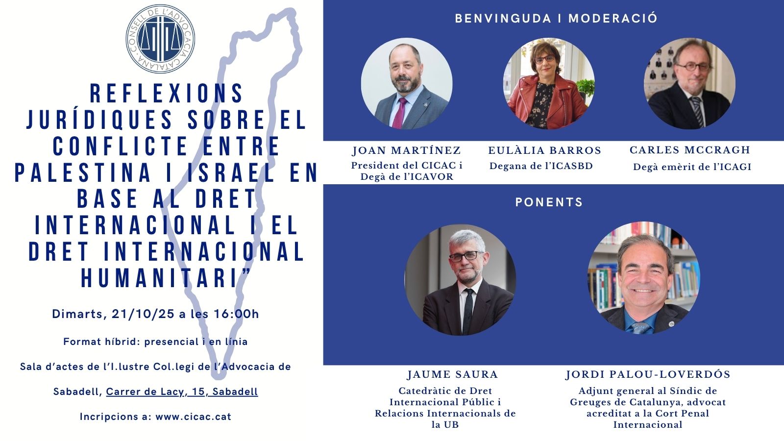 La presentació i benvinguda d’aquest webinar anirà a càrrec de l’Excma. Sra. Marta Martínez i Gellida, presidenta del Consell de l’Advocacia Catalana i degana del Col·legi d’Advocats i Advocades de Tortosa i del Sr. Enric Vinaixa Bonet, Secretari de Treball del Departament d'Empresa i Treball de la Generalitat de Catalunya.