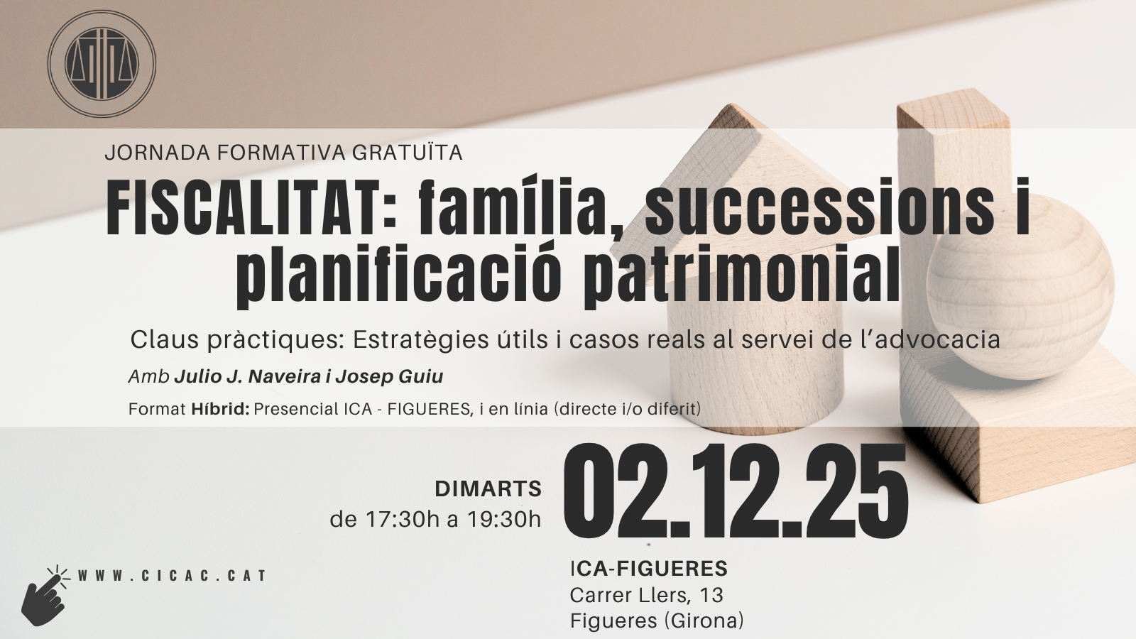 - Presencial a l’Il·lustre Col·legi de l’Advocacia de Figueres-Alt Empordà (Aforament limitat per ordre d'arribada d'inscripcions)