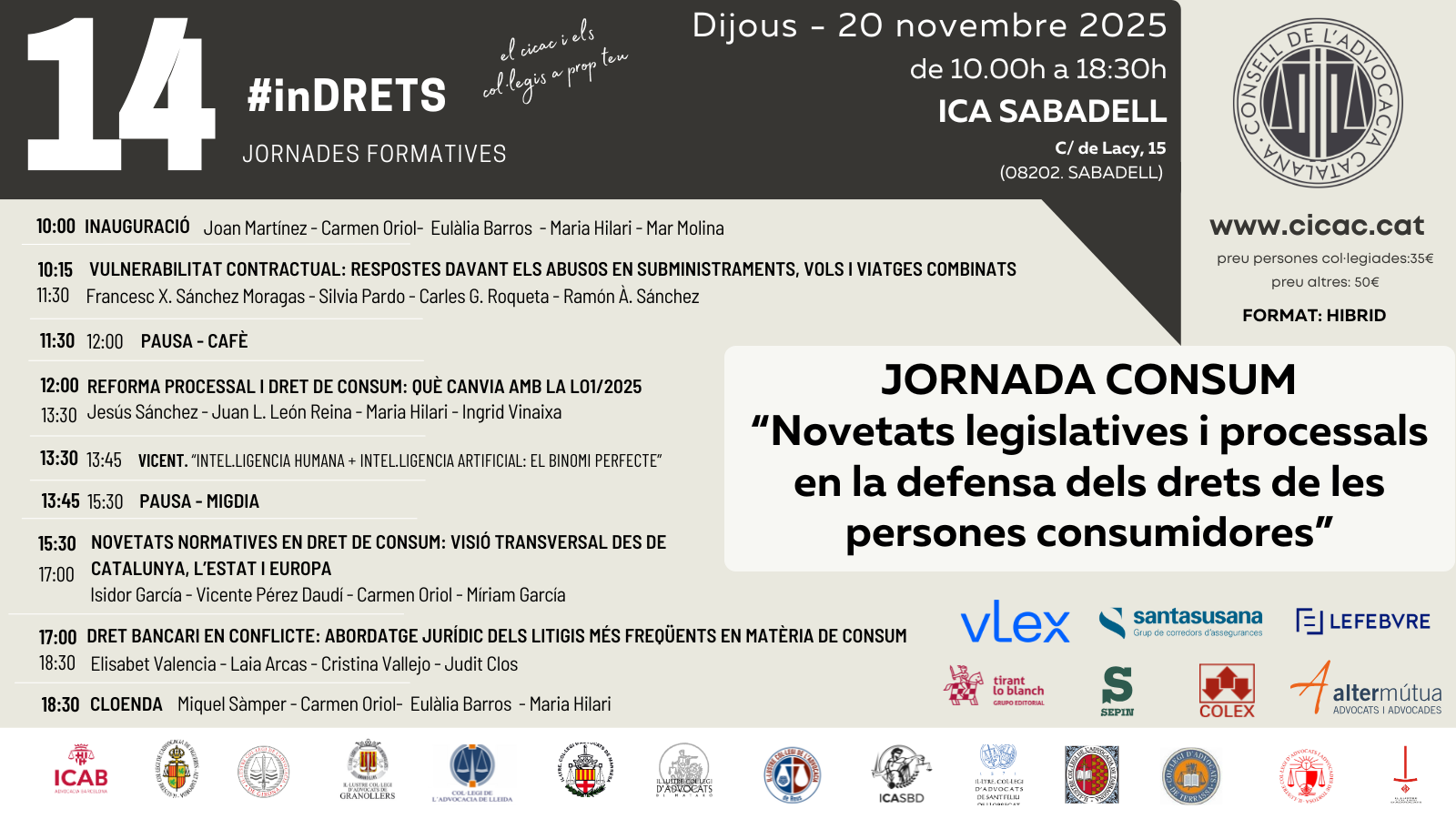 - Presencial a la seu de l’Il·lustre Col·legi de l’Advocacia de Sabadell